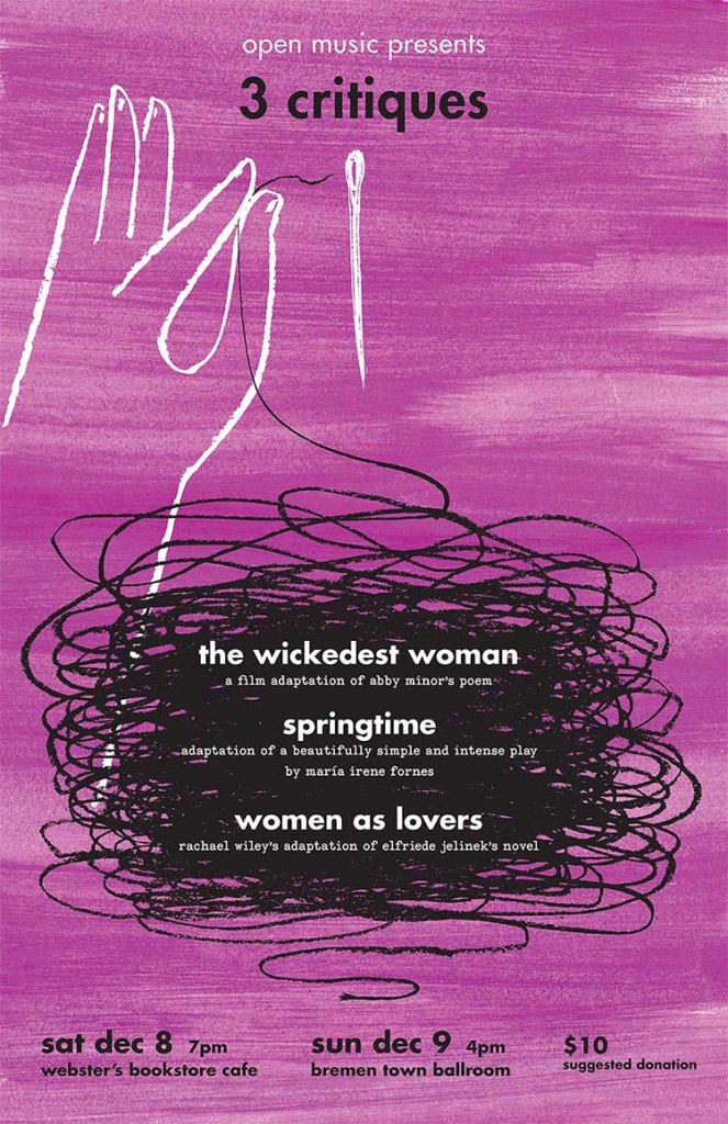 by Abby Minor, María Irena Fornés, and Elfriede Jelinek/Rachael Wiley
